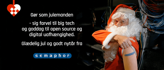 Traditionen tro har vi lavet et digitalt julekort - denne gang med selveste julemanden. Hvis du sender ham dine ønsker, er vi sikre på, at de går i opfyldelse. Selv ønsker vi os meget beskedent digital uafhængighed uden big tech til hele landet.