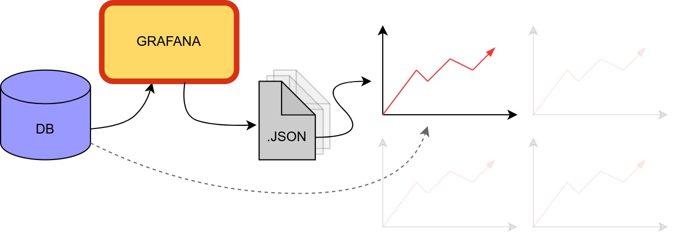 Figur 2 - Datakilden 'DB', eksempelvis en PostgreSQL database, bliver visualiseret på baggrund af JSON dashboards
